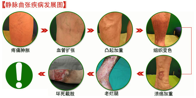 这些病人病情一年比一年加重,发展到后来,隆起的青筋更大,疼痛感加剧。随着年龄增大,机体免疫力下降,自身抵抗力下降,病情会逐步发展,导致淤血更佳严重,严重的发生溃烂,久治不愈,严重影响了正常生活和工作!
