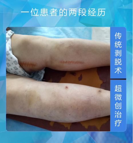 3、传统手术抽剥治疗:治疗费用高、疗效慢、疼痛大、留有疤痕等,正一步步被社会所淘汰。