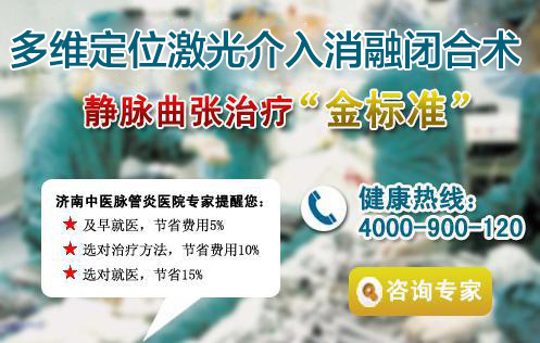 三期:曲张血管增多,出现并发症。由于长期大量的静脉血返流,静脉高压作用于大小隐静脉及其分支,使得大小隐静脉及其分支高度扩张、迂曲,呈团块样改变。在此期的患者会出现许多并发症,如皮肤瘙痒,湿疹、淤积性皮炎等皮肤病变。这种症状在周围血管学上统称为并发静脉炎。此时如果再不治疗,发展下去会加倍的严重。