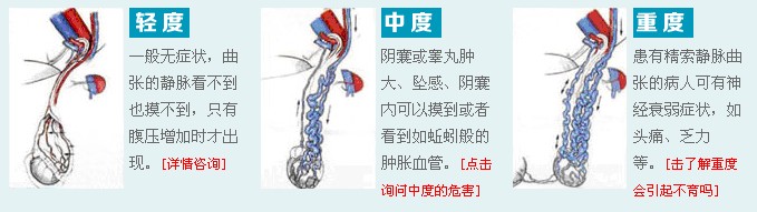 专家指出:轻度精索静脉曲张一般是没有什么症状,一般轻微的患者有阴囊胀痛的感觉,站的时间长了还会出现腰痛的现象,但是在平卧休息的时候就可以得到缓解。