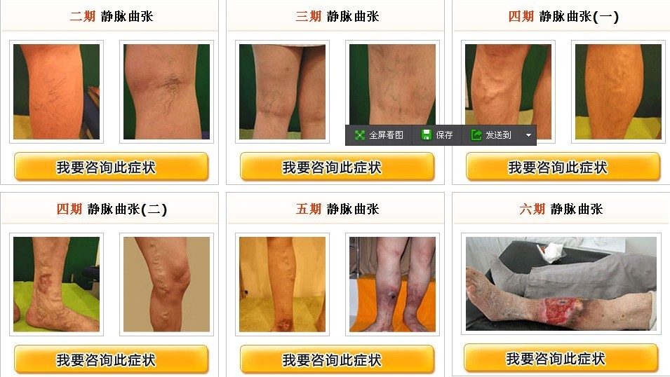 据目前国际通用标准(CEAP分类诊断中的临床表现分期),可将静脉曲张的发展分为六期: