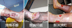 2、溃疡不愈:小腿内侧、外侧、胫前、胫后、脚踝部出现溃疡,创面及深度不断扩大加深,久治不愈。